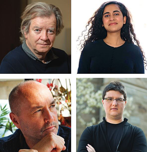 A Guestbook Project Conversation, entitled “Narrative Hospitality,” at which Colum McCann (bottom left) discussed the theme with Richard Kearney and received the 2024 Guestbook Award for Narrative Hospitality. In addition, the event was the book launch for Hosting Earth: Facing the Climate Emergency, edited by Richard Kearney (top left), Peter Klapes (bottom right), and Urwa Hameed (top right). November 21, 2024.