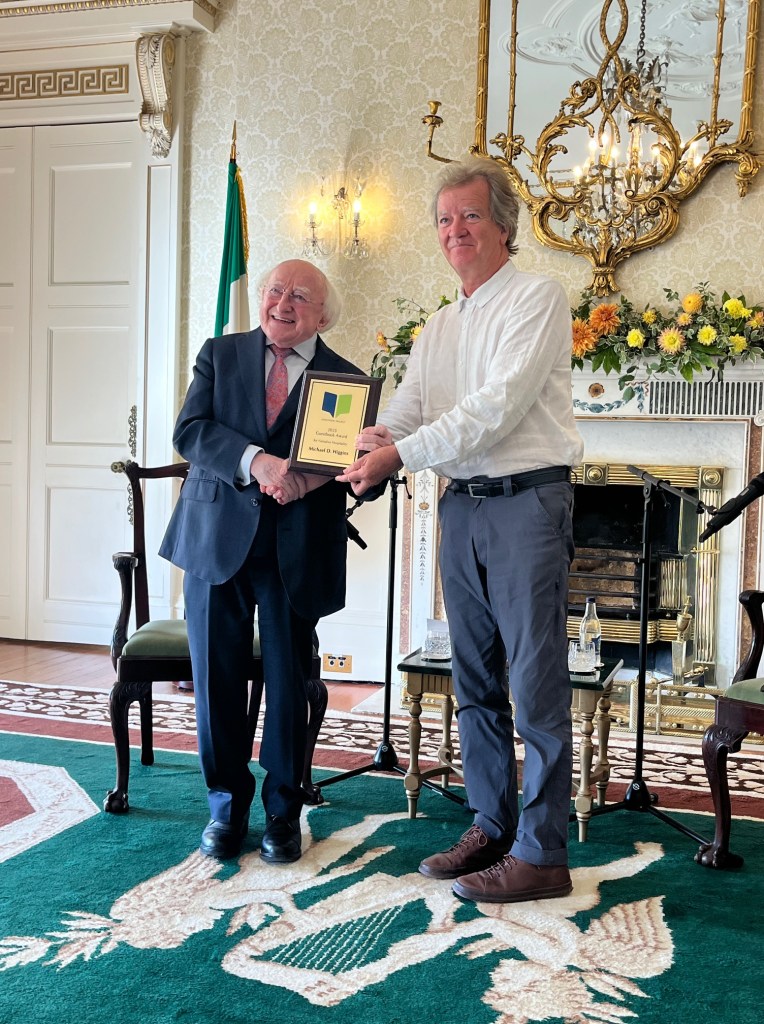 Richard Kearney presents President Michael D Higgins of Ireland with the Guestbook Award for Narrative Hospitality, Sept 26 2025
